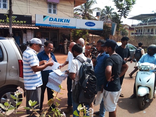 So, yesterday the Panch Shri Santosh Desai, govt. surveyor, govt engineer and Sancoale Panchayat Secretary came and we conducted an official re-survey of the M.E.S. College road and all properties lining it. This was witnessed by the shop owners and residents. Now we will have an official report on all encroachments that have taken place. As per procedure, action will follow. 390